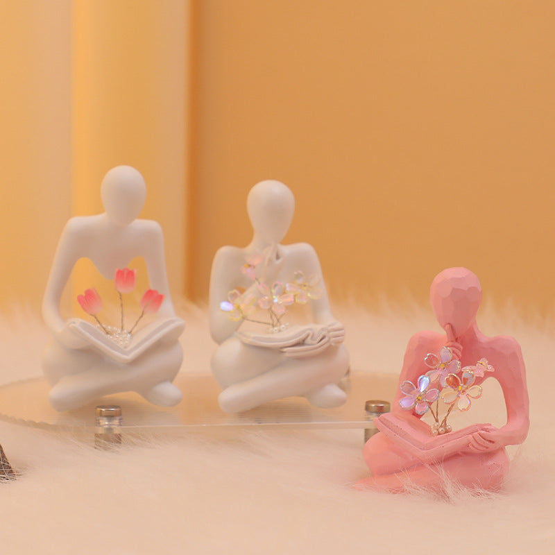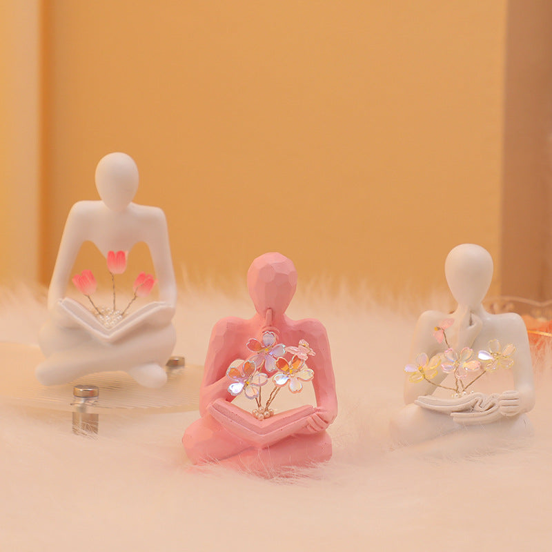 ️ Kleine Nachtlampe „Golden Thinker“ – Handgemachtes Resin-Ornament für Zuhause